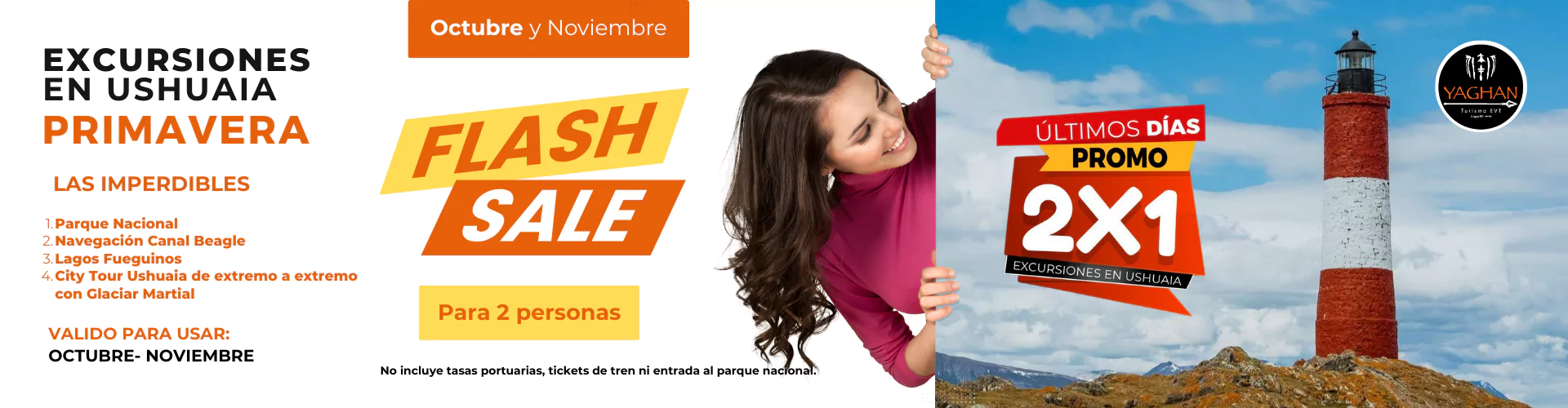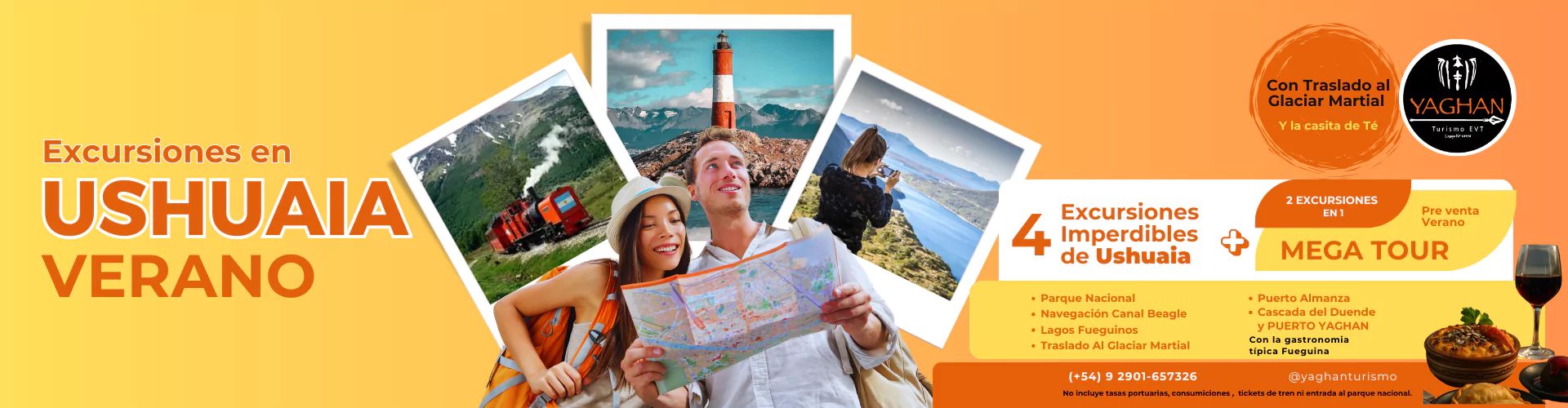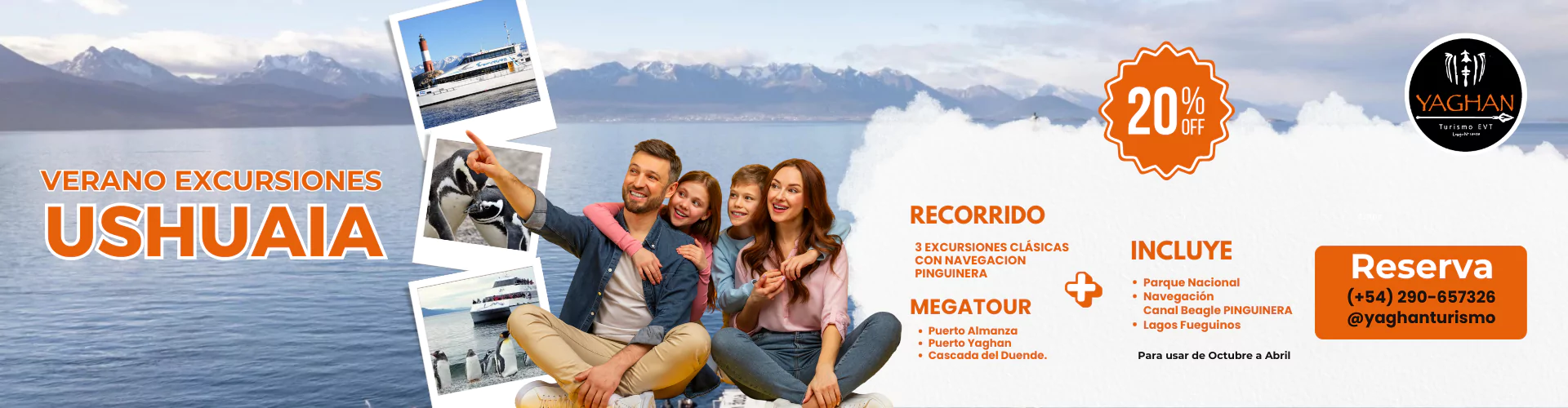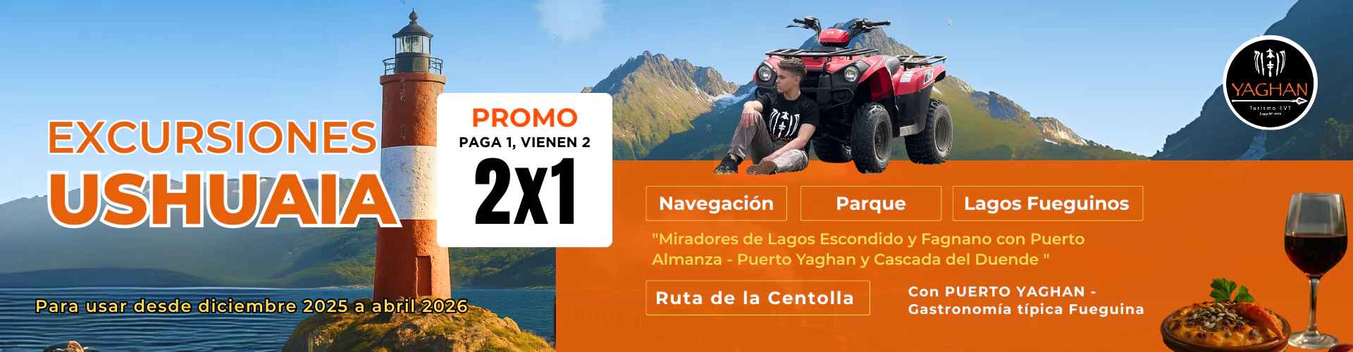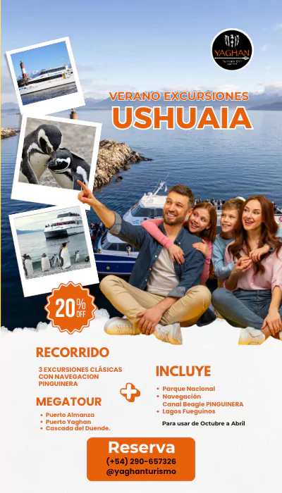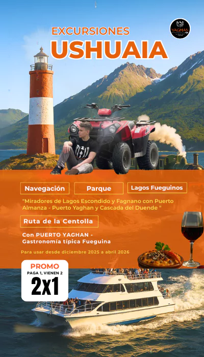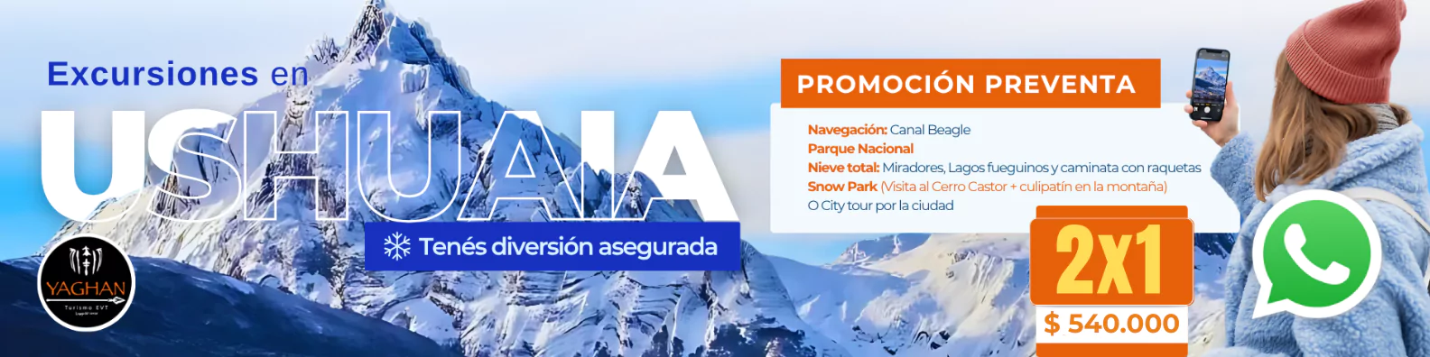 Súper Promo Ushuaia OCTUBRE Y NOVIEMBRE: 4 Excursiones Imperdibles 2 x 1en 6 cuotas!