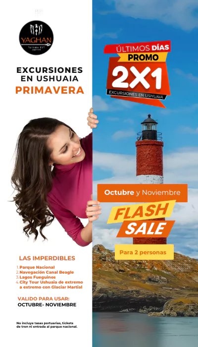Súper Promo 2×1 Ushuaia OCTUBRE Y NOVIEMBRE: 4 Excursiones Imperdibles PARA 2 PERSONAS en 6 cuotas!